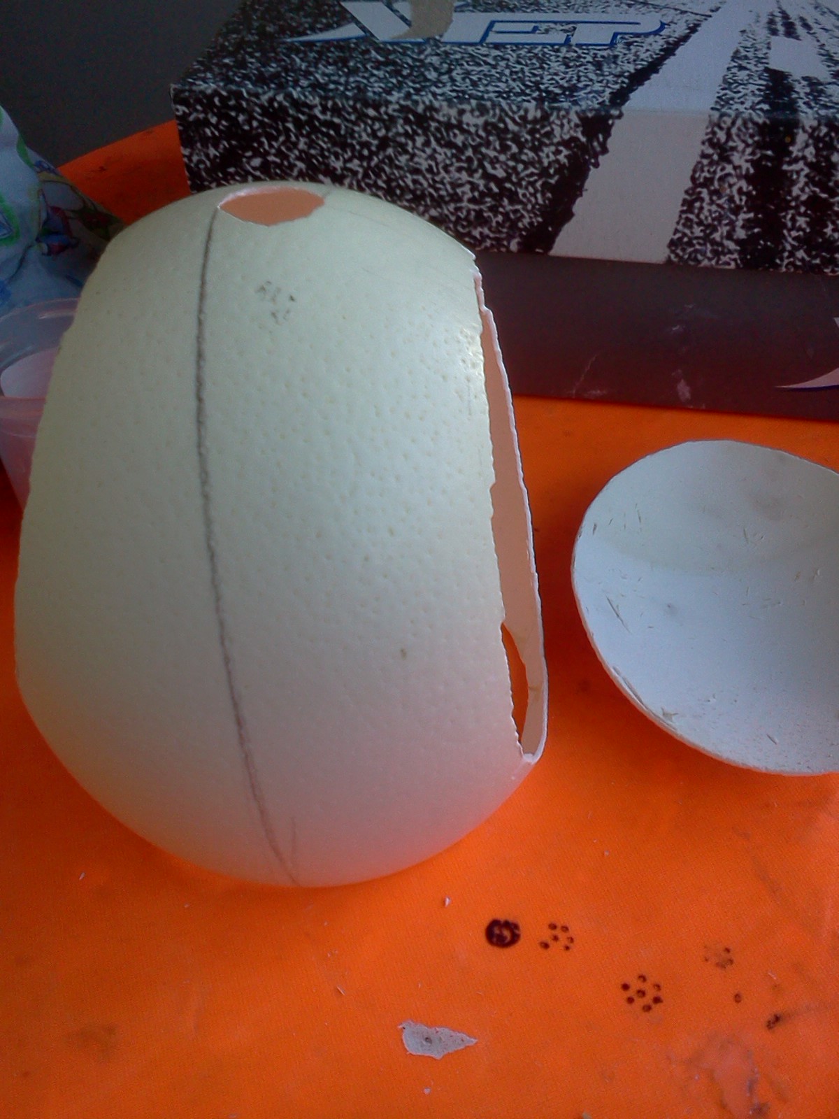 Preparando huevo de avestruz para trabajar