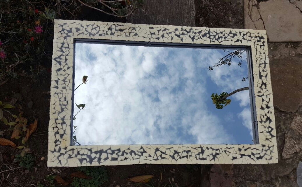Espejo elaborado con cáscaras de huevo de avestruz Autóra Consuelo Hernández