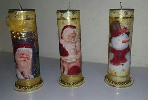 Otros trabajos que realizo para está navidad velas decorativas autora Consuelo Hernández