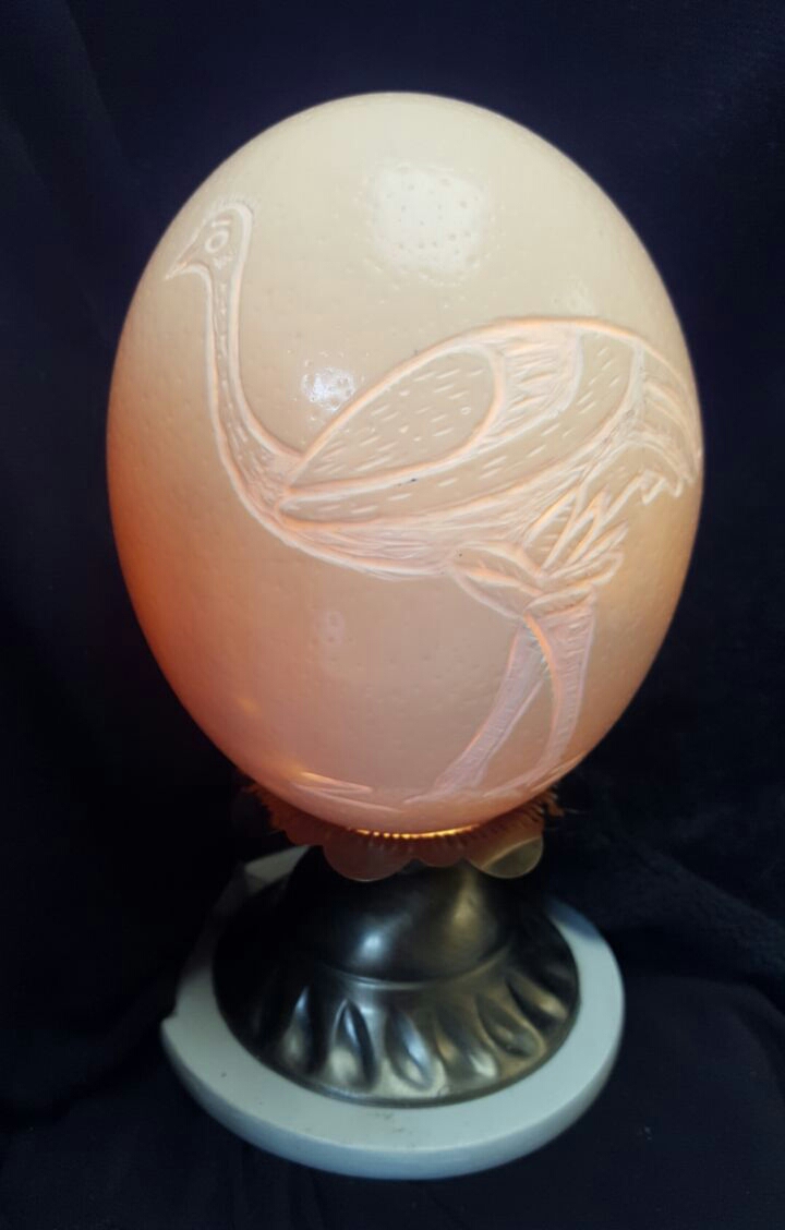 Huevo de avestruz tallado (lámpara) Autora : Consuelo Hernández Tunja-Boyacá