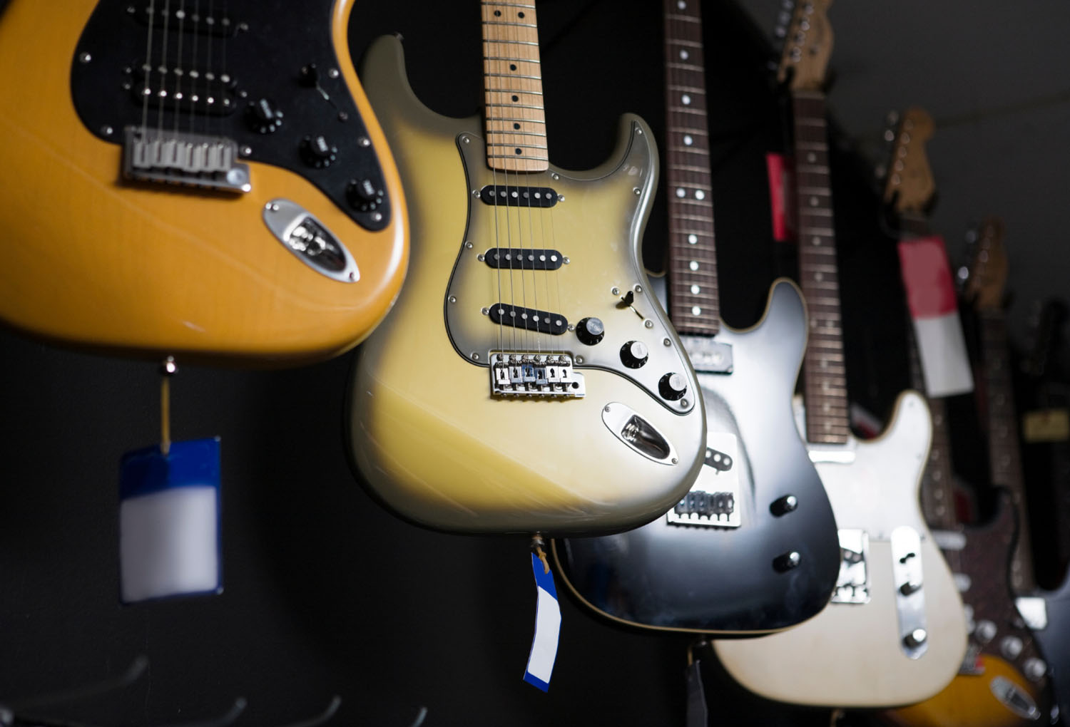 Aunque esté entre otras, ella definitivamente se destaca... La Fender Stratocaster, una joya a simple vista.
